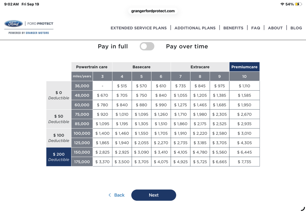 There are lots of different forms Ford Protect offers, as you are able to choose different mileage, year, and coverage options.