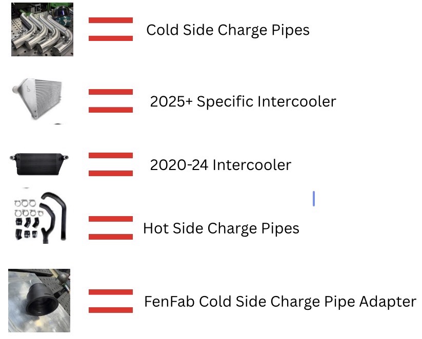 - Option 5: You want a 2025+ specific intercooler, Fenfab cold side charge pipe, and FenFab adapter